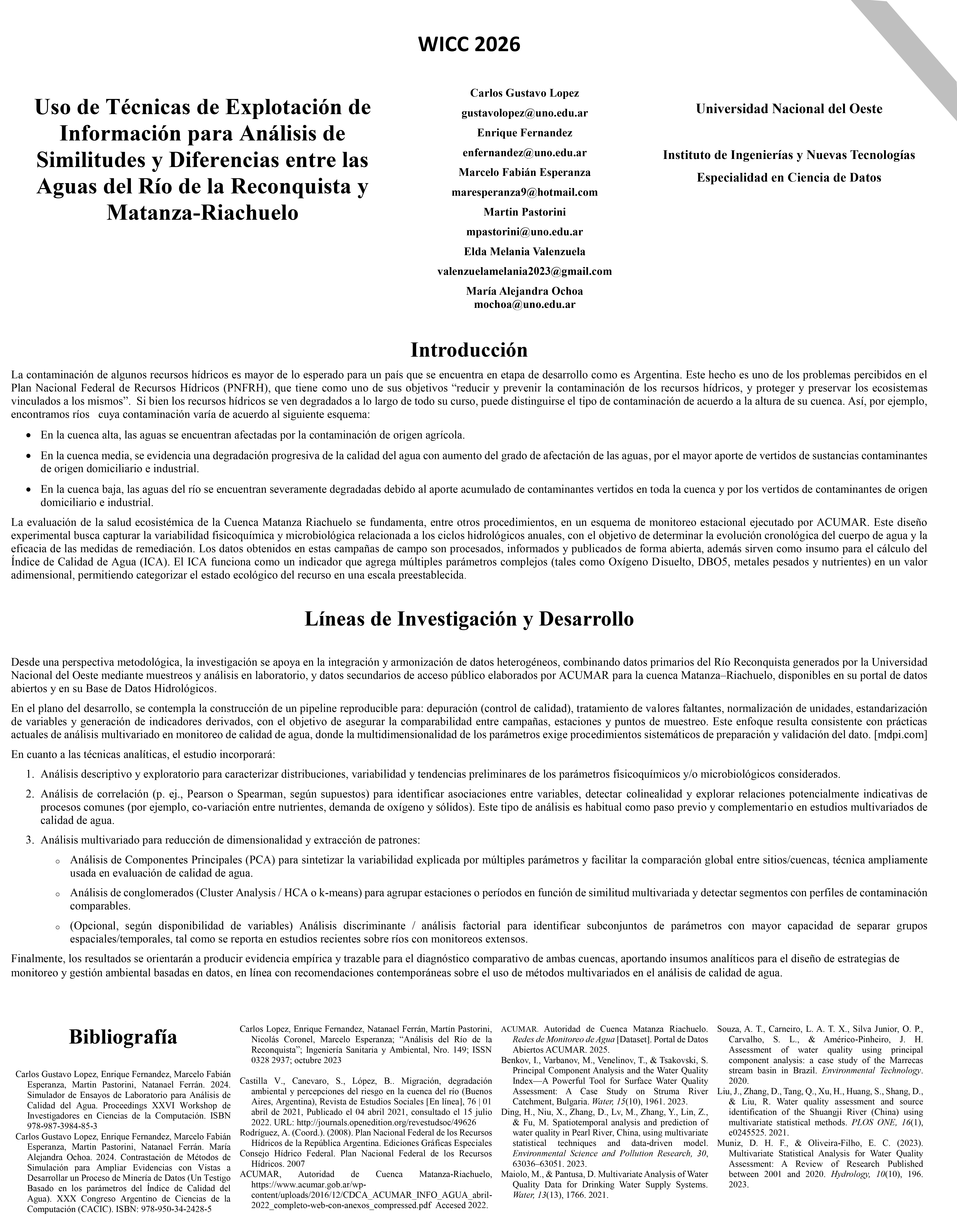 Uso de Técnicas de Explotación de Información para Análisis de Similitudes y Diferencias entre las Aguas del Río de la Reconquista y Matanza-Riachuelo